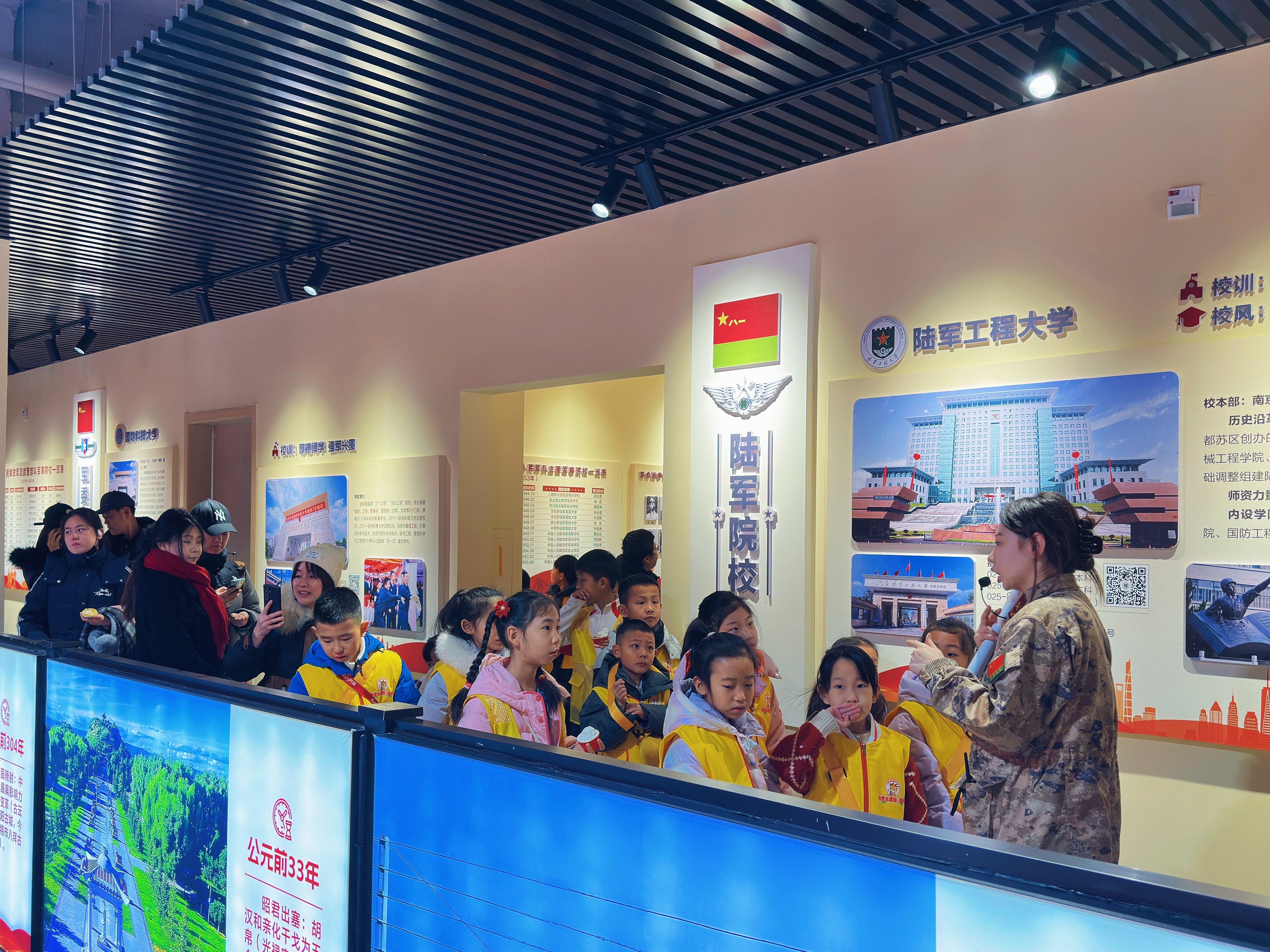 二楼约600平方米的展览区,精心设置了《中国人民解放军军事院校巡礼展》《内蒙古八千里边防展》及《蒙古马精神特展》三大主题展览,构筑起一个立体生动的国防文化殿堂。