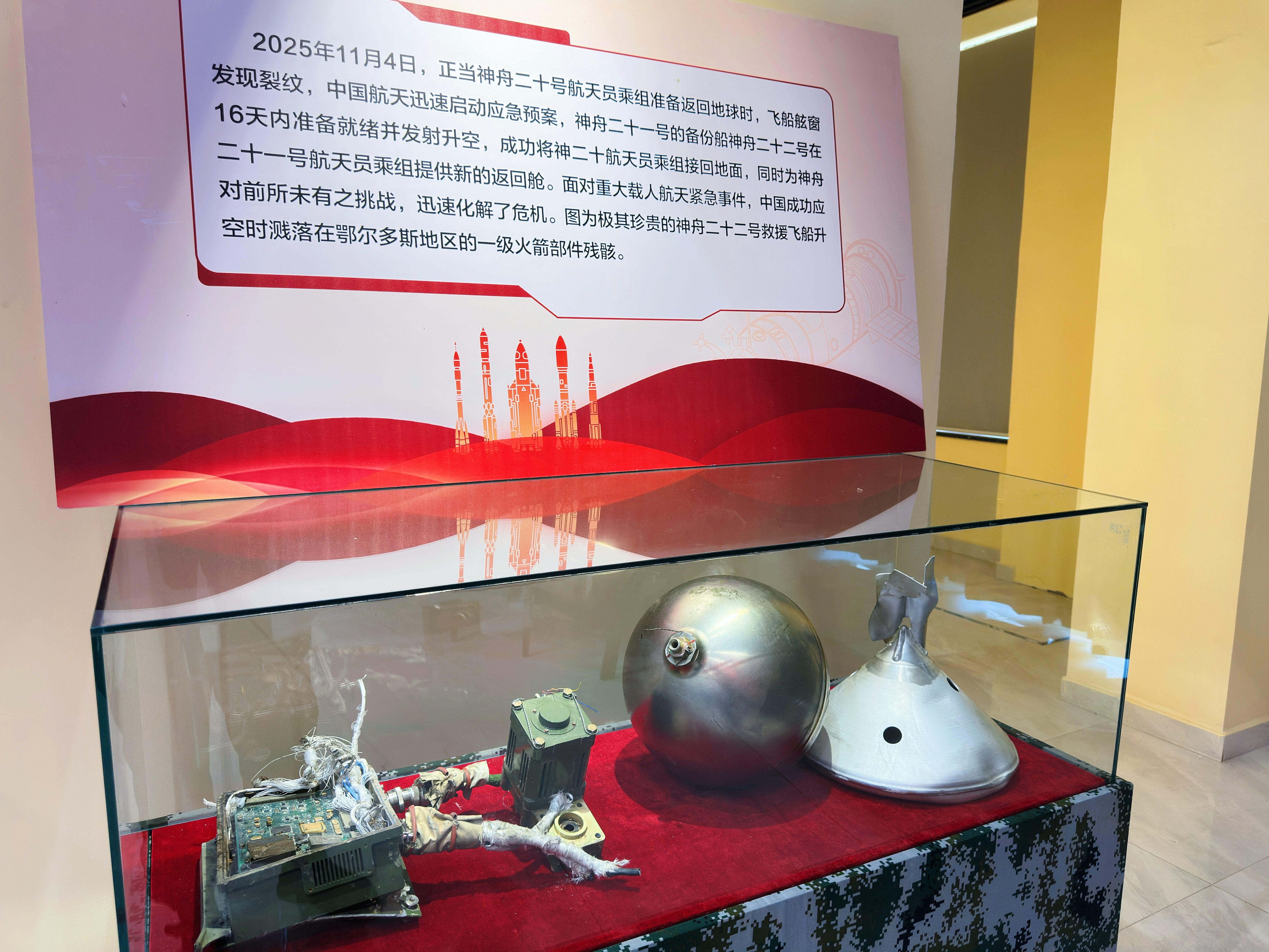 特别值得一提的是,不久前神舟二十二号运载火箭在鄂尔多斯草原一级分离的部分器件也在此展出,让航天荣耀触手可及,极大增强了展览的科普价值与纪念意义。